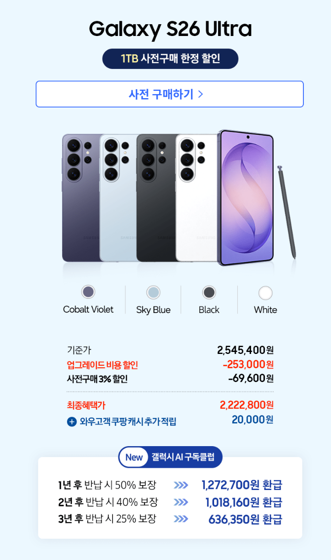 #갤럭시S26사전예약 #갤럭시S26사전예약혜택 #갤럭시S26울트라 #갤럭시S26 #갤럭시울트라 #프라이버시디스플레이 #삼성스마트폰 #자급제폰 #스마트폰사전예약 #갤럭시신제품