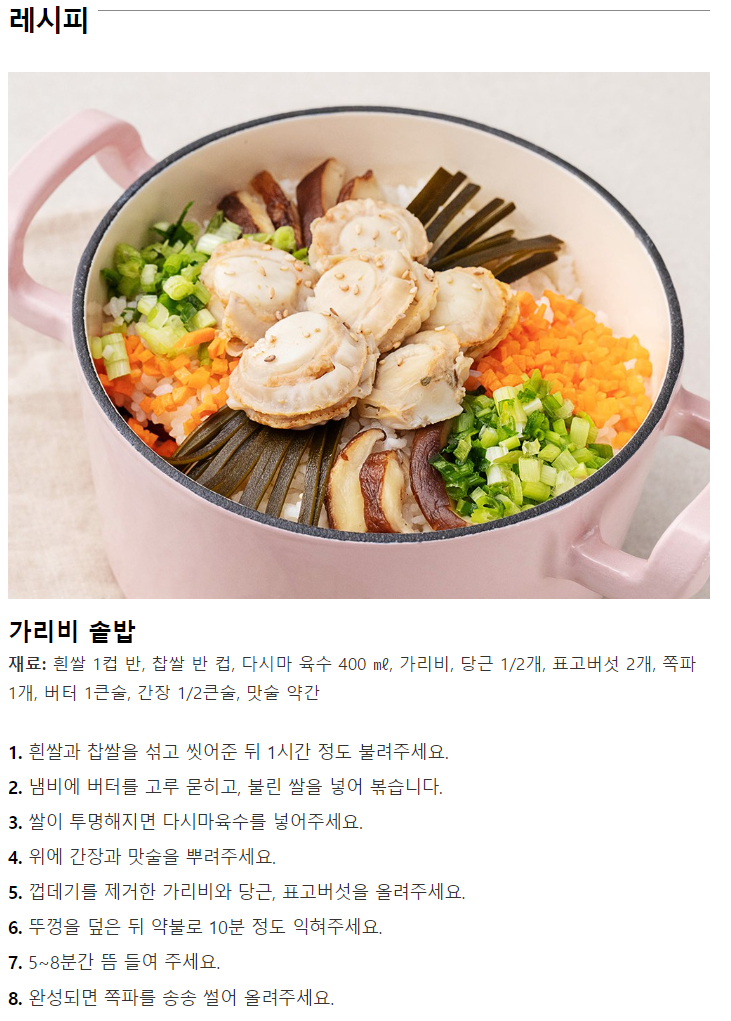 • 소금 아주 살짝만 해도 가리비 자체 감칠맛이 살아납니다.