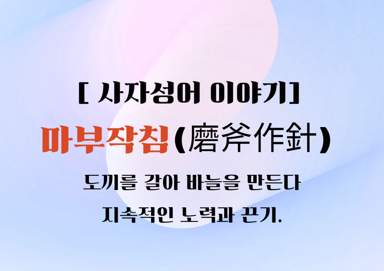 즉, 마부작침은 “작은 노력이 쌓여 큰 성과를 만든다”는 인내의 지혜를 알려줍니다.