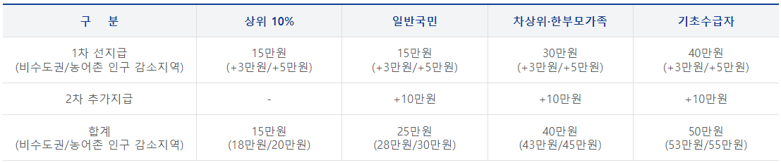 • 1차 민생회복 소비쿠폰은 모든 국민을 대상으로 하되 소득 수준에 따라 지급금액이 달라짐