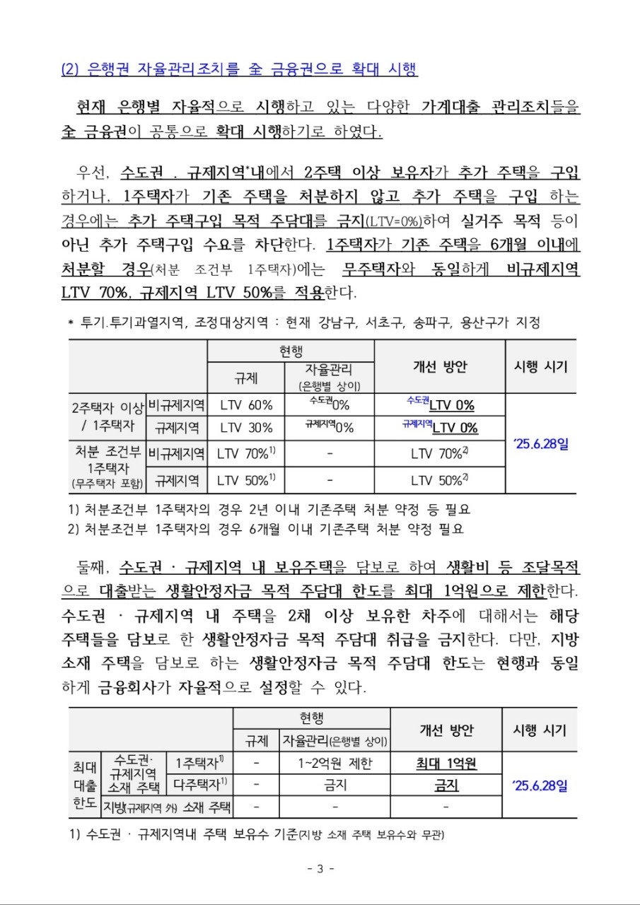 2. 수도권·규제지역 주담대 제한 강화