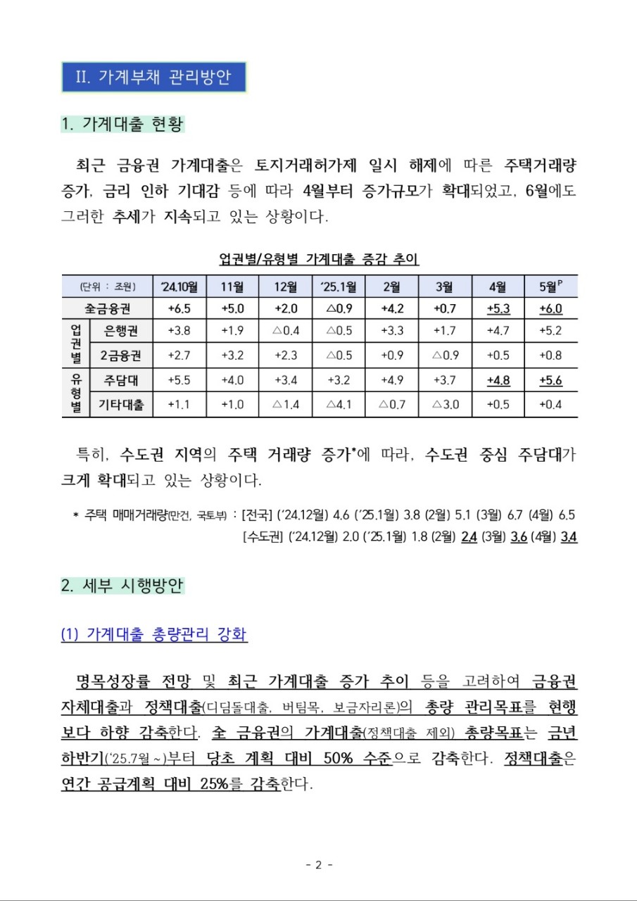 1. 가계대출 총량 관리 강화