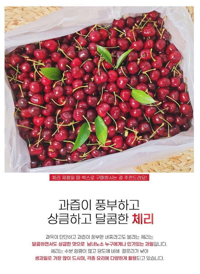 - 미국산(예: 워싱턴주 체리): 주로 **초여름(6~7월)**에 많이 보이는 편이라, 여름엔 미국산 비중이 커지기도 해요. (판매 페이지 원산지 표기를 꼭 확인하는 게 안전합니다.)