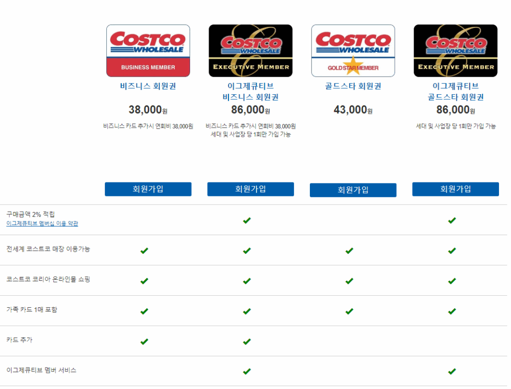 코스트코 코리아에는 대략 다음 네 가지 회원권/등급이 있어요