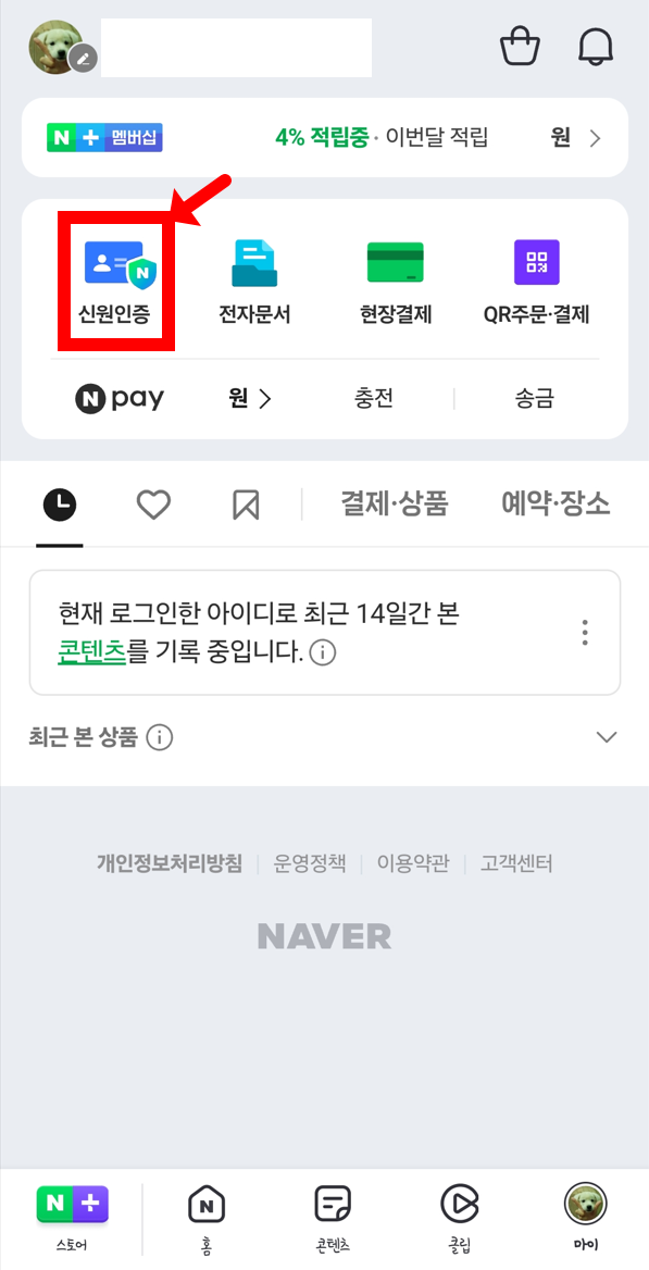 1. '네이버앱 ' 에서 하단 MY(마이)탭