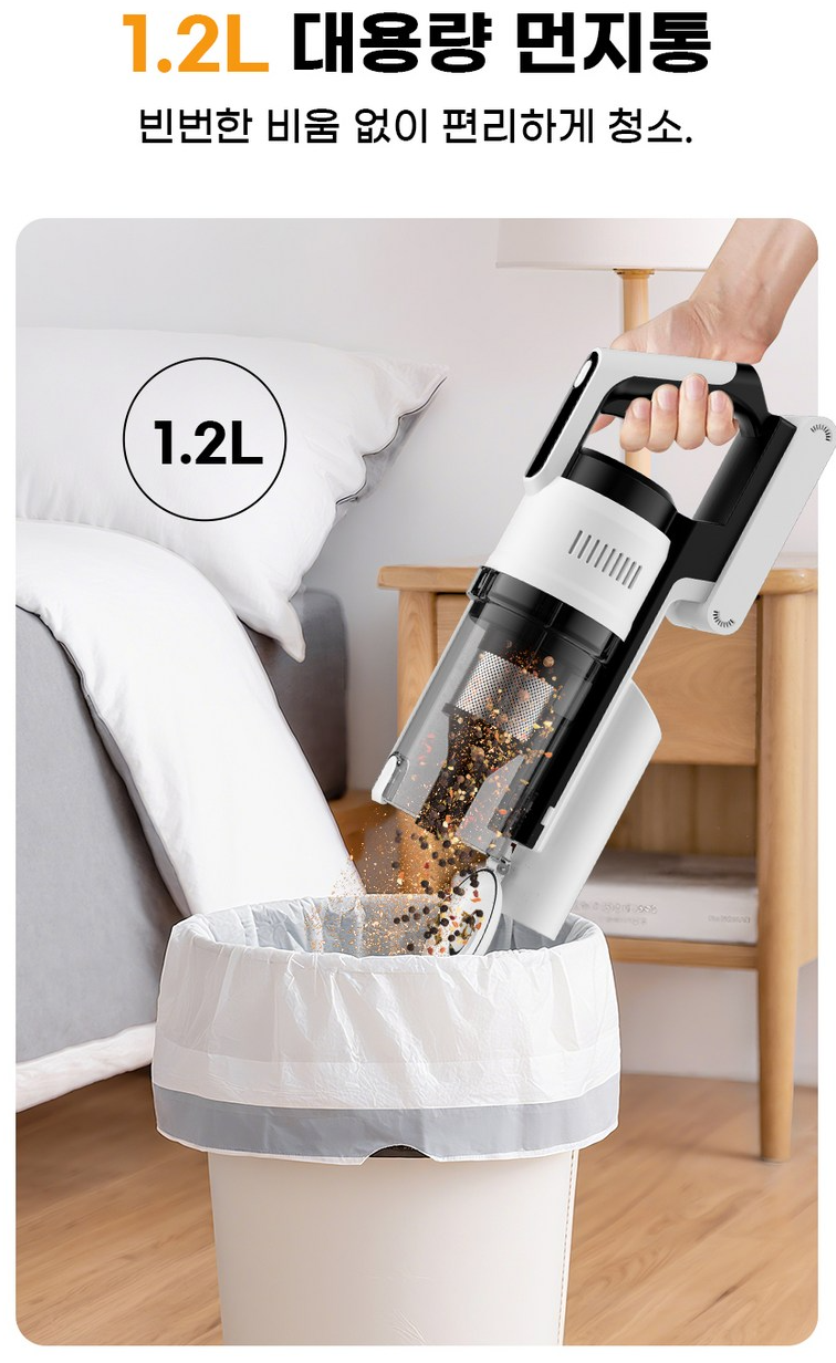 • 머리카락, 먼지, 과자 부스러기 같은 생활 쓰레기는 한 번에 흡입