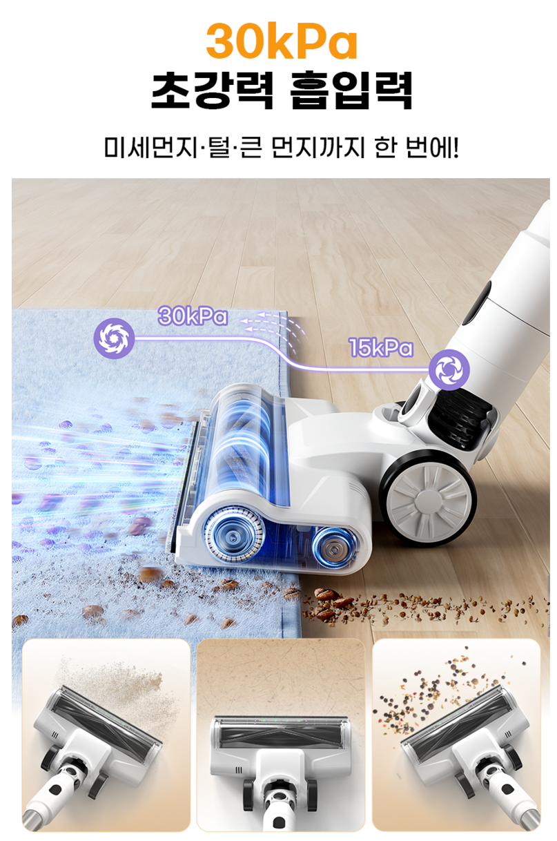 BLDC 모터 30KPa 흡입력 + LED 바닥 브러시 + 셀프 스탠딩까지
